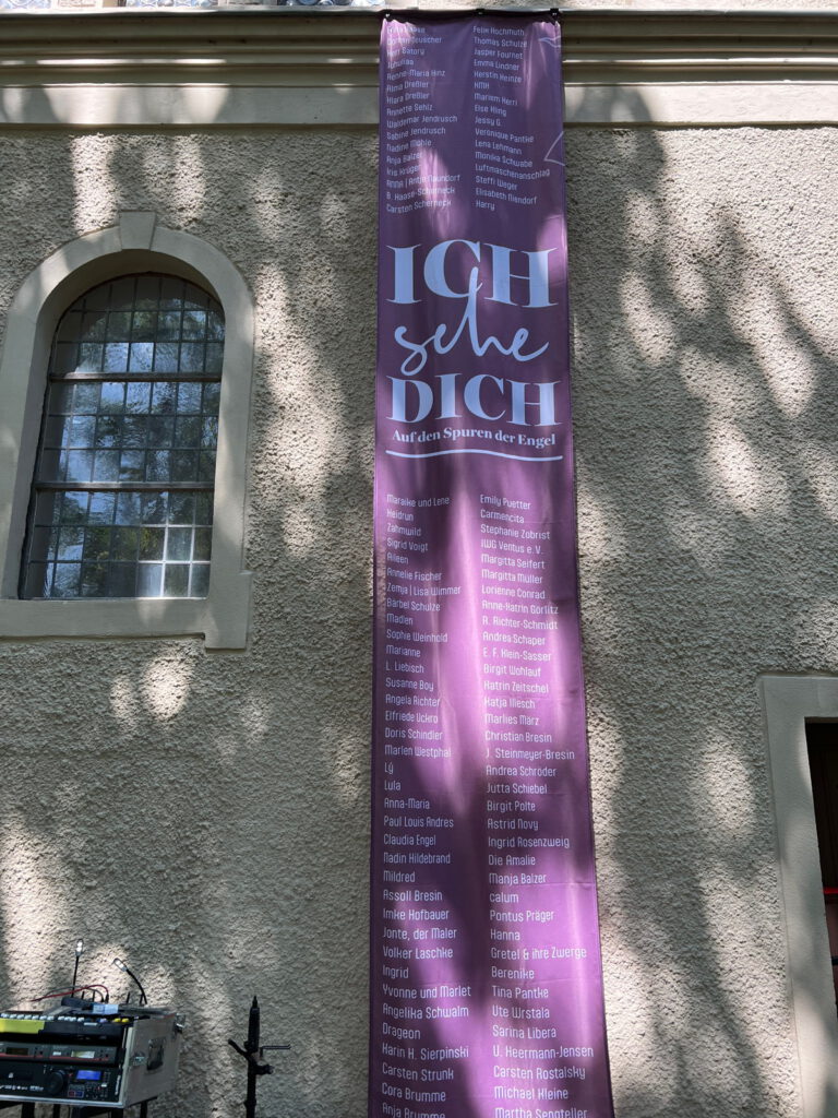 Im Juni des Jahres 2023 wurde eine Wanderausstellung „Auf den Spuren der Schutzengel“ in der Dorfkirche Wiepersdorf eröffnet. Ich beteiligte mich mit dem Bild Schutzengel.