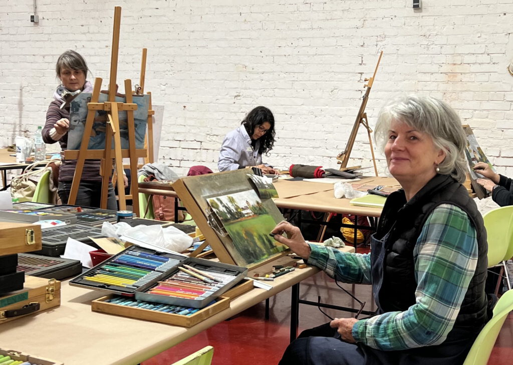 Wir malten gemeinsam 3 volle Tage mit Pastellen in der Baumwollspinnerei in Leipzig. Man konnte uns beim Malen über die Schultern schauen, die Tür stand den Besuchern offen. Wir hatten gemeinsam viel Spaß und es fand ein reger Erfahrungsaustausch über Techniken der Pastellmalerei statt. Das Ergebnis waren zahlreiche Pastellwerke.